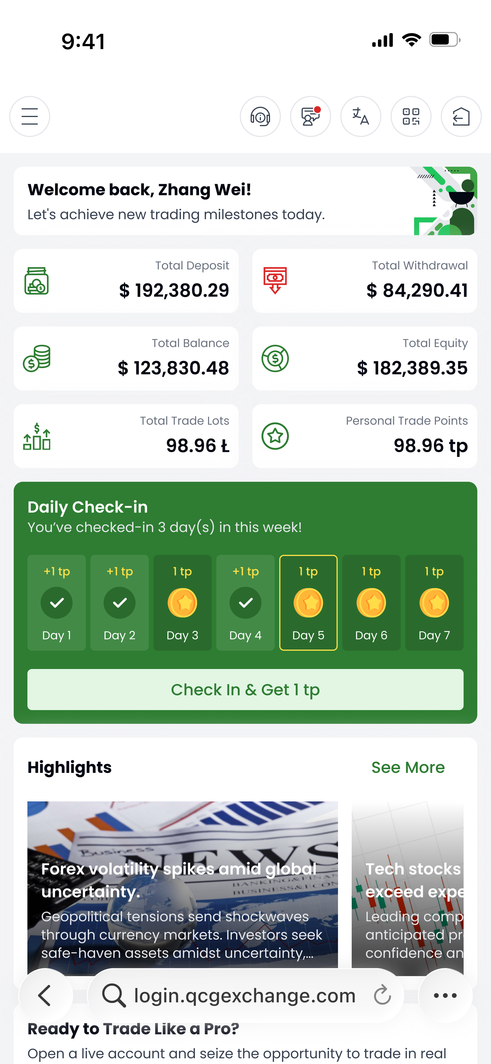Experience the full power of QCG’s innovative trading platform with live market conditions, tight spreads, and fast executions. Each trade you make earns valuable Trade Points that can be redeemed for exciting rewards and perks.